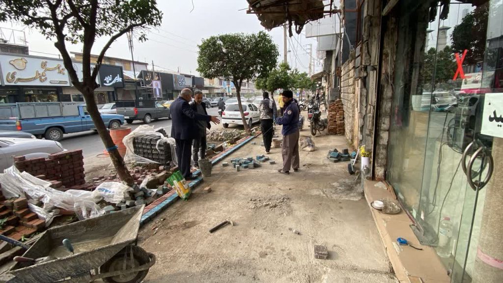 عملیات عمرانی پروژه پیاده رو سازی (ضلع شمالی) خیابان شهدا توسط واحد فنی وعمرانی شهرداری فریدونکنار